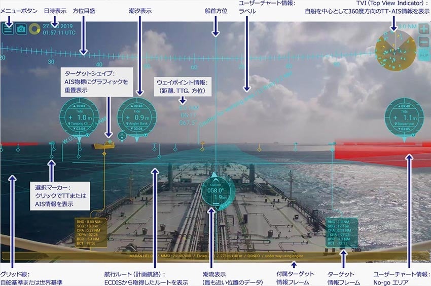同船舶には多くの新技術が採用されており、その中の一つとして船員の視認性・操作性・安全性向上のために、当社の全周ARナビゲーションシステムも搭載されています。本システムの搭載により、従来の航海機器では得られなかった直感的で広範囲な情報把握が可能となり、船員の負担軽減と安全性の向上に大きく寄与しています。