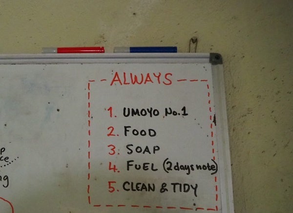 オフィスには、ホワイトボードに毎日のチェック事項が記載されています。