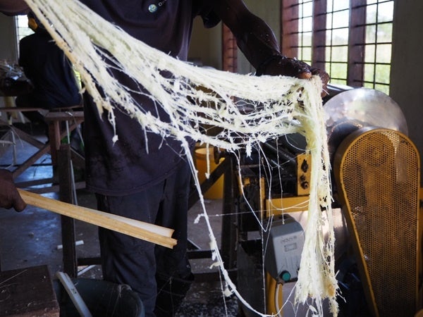 繊維状にした茎を乾燥させたあと、エンフエ村からトラックで出荷され、首都ルサカ→モザンビークまで運び、モザンビークから船便で日本へ届きます。