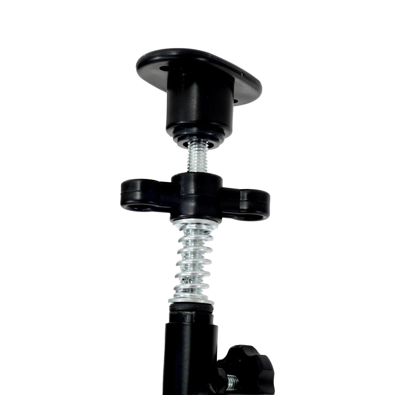 四脚の収納棚を土台に、床と天井でつっぱってガッチリ固定する構造で、転倒リスクを極限まで抑えた高い安定性を確保しています。ライトやビカクシダの重みで棚が倒れにくい設計です。