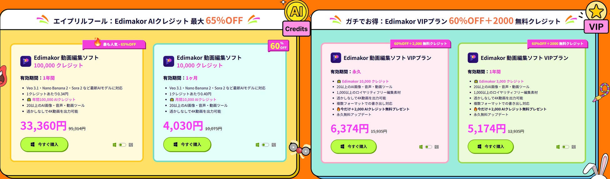 AIクレジット:最大65%OFF