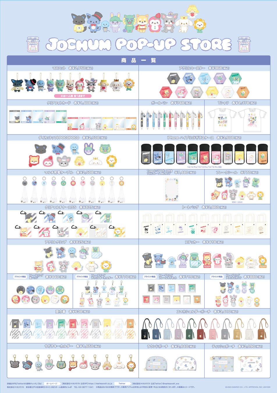 最新情報は「JOCHUMポップアップストア マリモクラフト特設ページ」もしくは「マリモクラフト イベント用Twitterアカウント」をご確認ください。