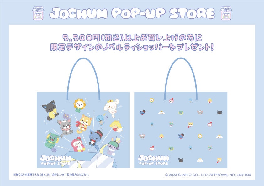 「JOCHUM ポップアップストア」では、各キャラクターがデザインされたトートバッグやスマホ関連グッズなど“推し活”にぴったりなアイテムを先行販売いたします。さらにこのポップアップストアで商品を5,500円(税込)以上お買い上げの方には、限定デザインのノベルティショッパーをプレゼントいたします。