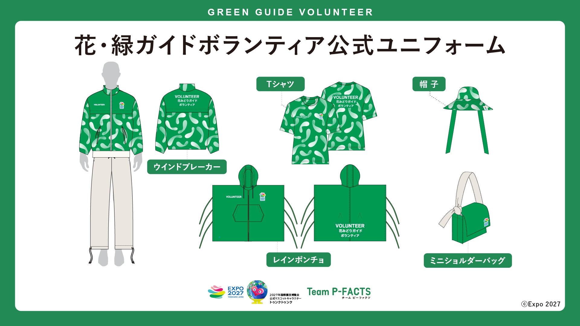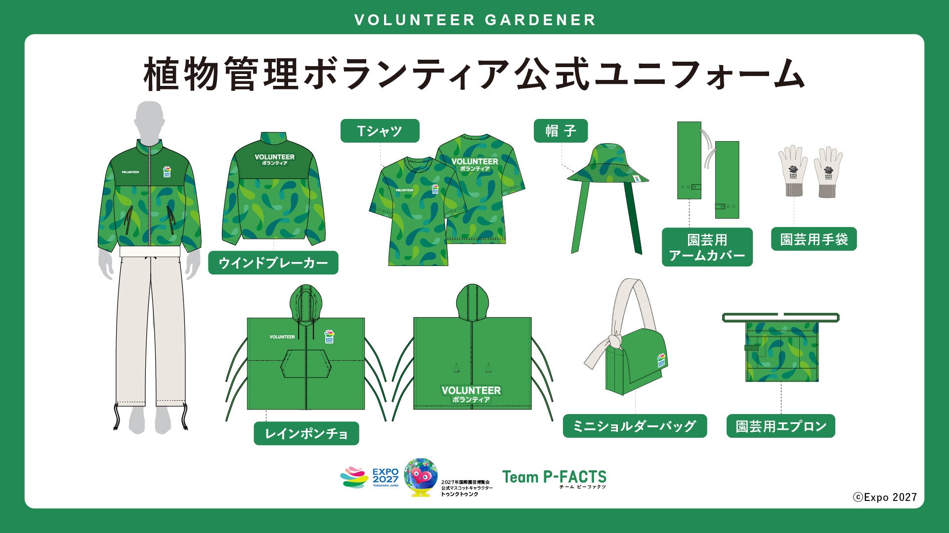GREEN×EXPO 2027で、「Team P-FACTS(チーム・ピーファクツ)」は来場者のアテンドや会場運営、ガイド、植物管理を担うスタッフ・ボランティアが着用する4種類の公式ユニフォームを提供します。