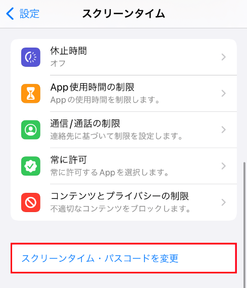 - 「スクリーンタイム・パスコードを変更」をタップします。