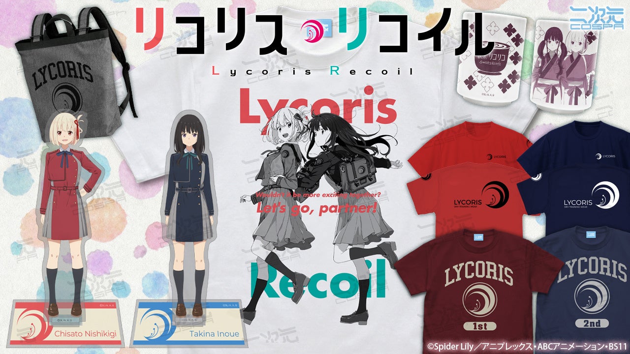 『リコリス・リコイル』“錦木千束” “井ノ上たきな” のTシャツやアクリルスタンドなど新グッズ6種が二次元コスパから登場!【株式会社コスパ】