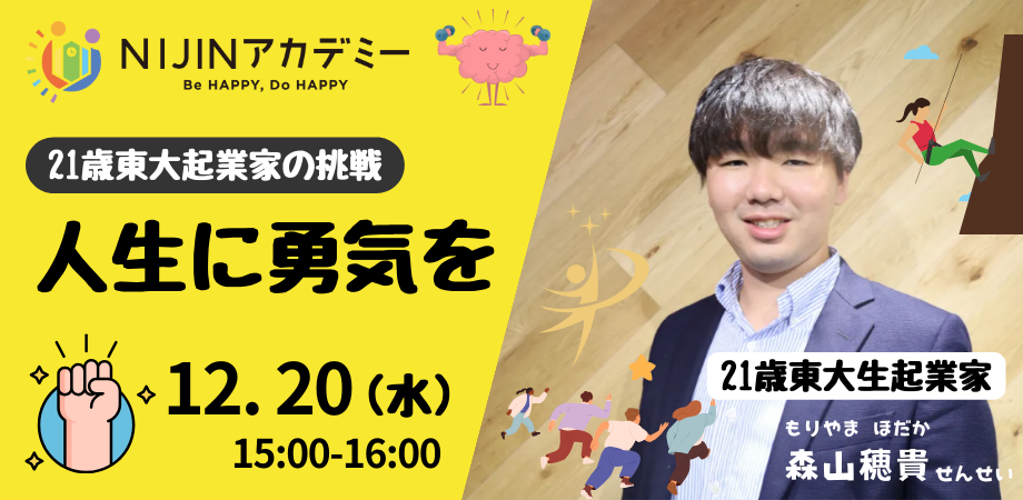 日本中の学校をハッピーにする株式会社NIJIN(本社:東京都江東区、代表取締役:星野達郎)が運営する小中学生向けオンラインスクール「NIJINアカデミー」は、このたび、東京大学の現役学生で株式会社emomeを立ち上げた森山穂貴氏をお招きし、オンライン特別授業を開催します。