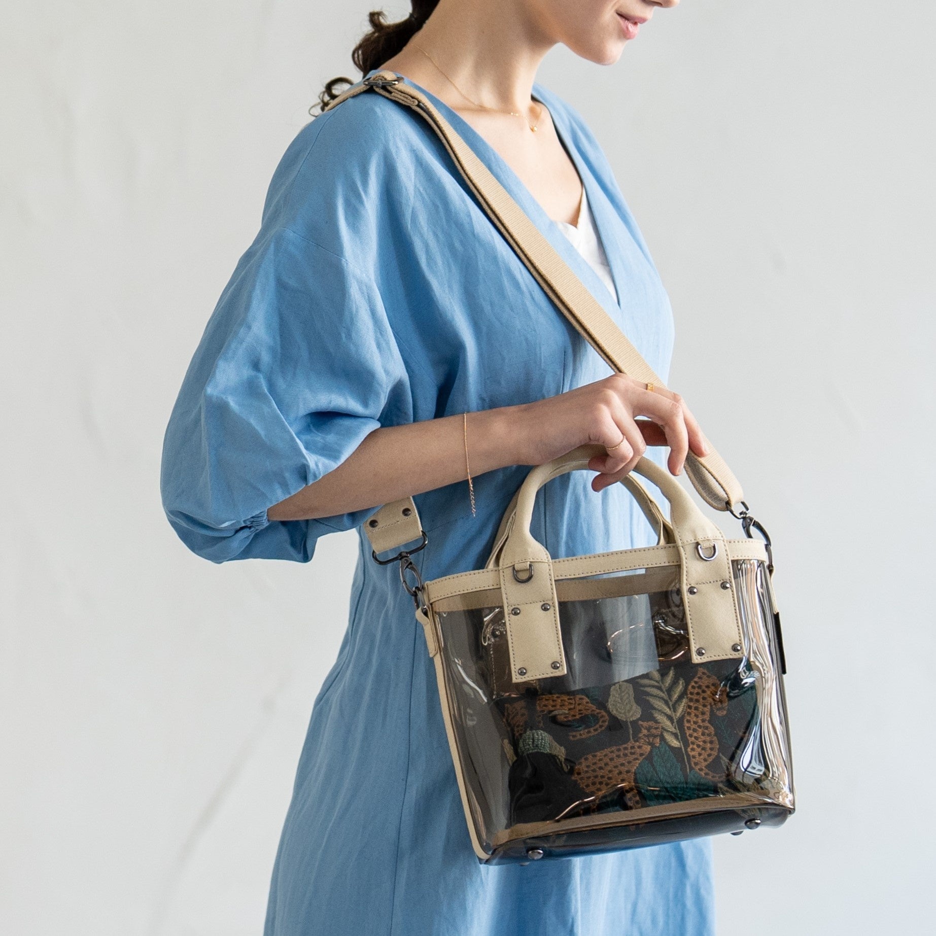 クールなカラーは落ち着いて美しく、知的な大人っぽさを保てます。大人カラーのクリアバッグが「今年顔」です。