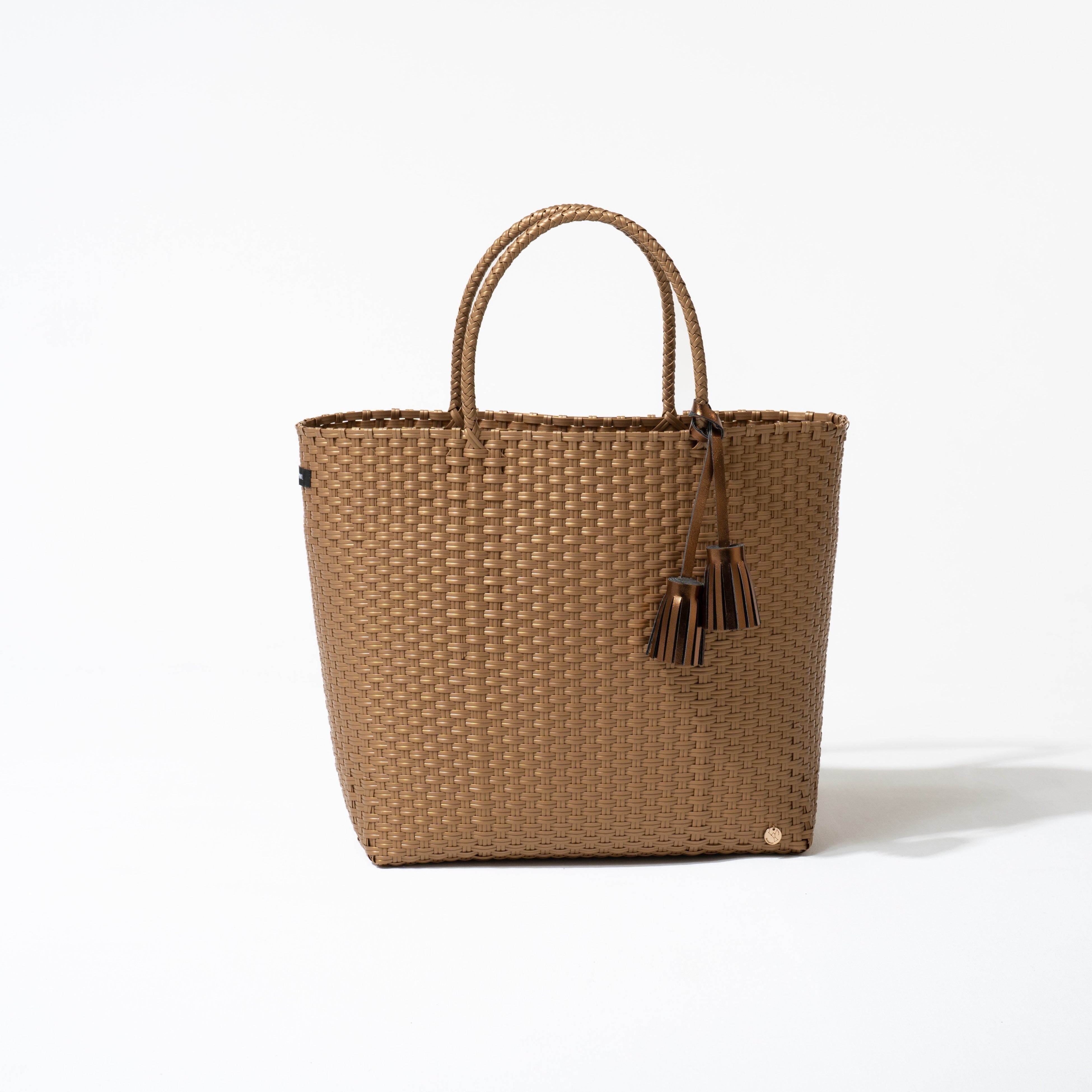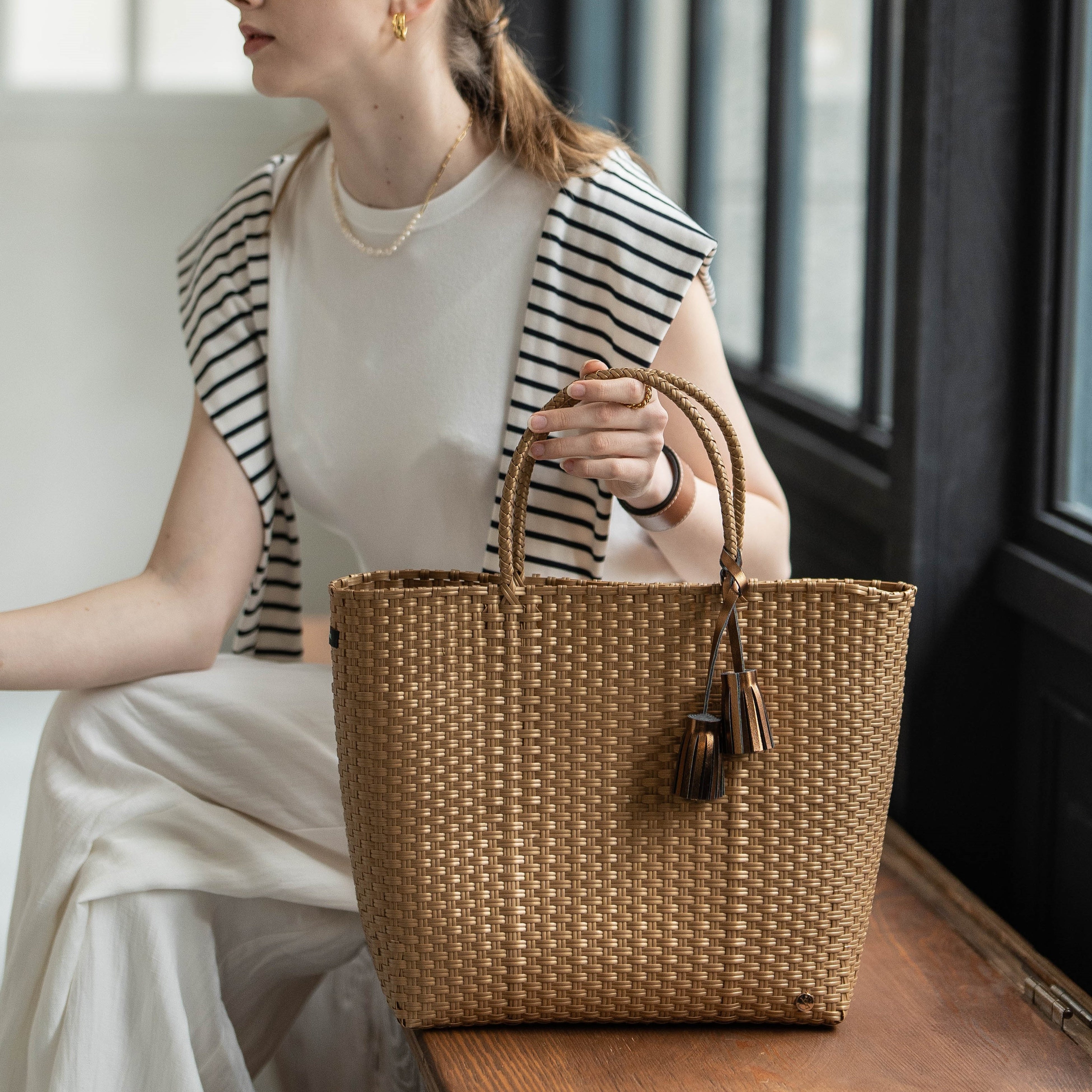 シンプルで上品なデザインが人目を引く、大容量メルカドバッグ。