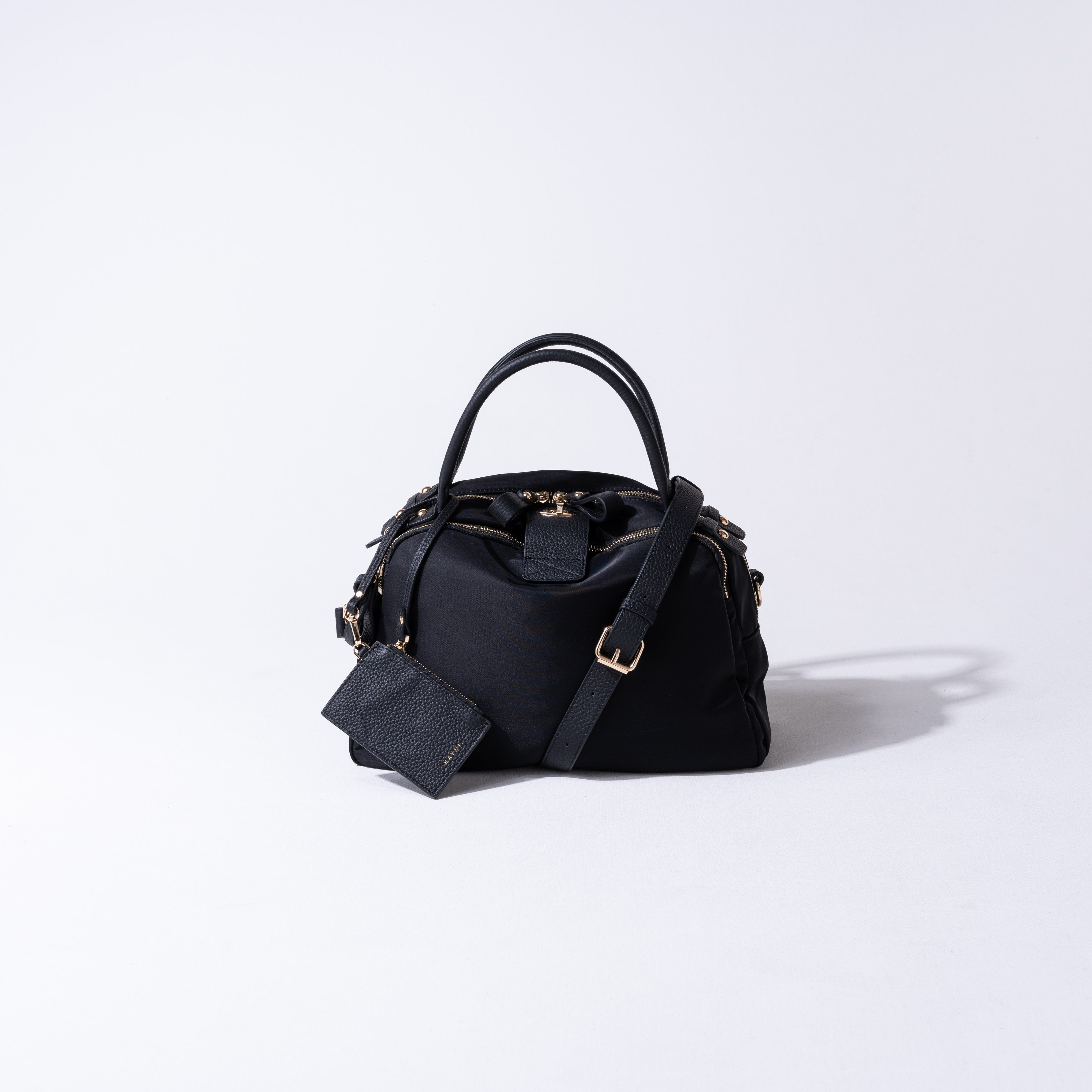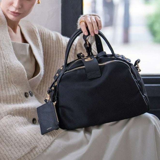 ハイブランドのナイロンバッグにも見劣りしないハリと上品な色ツヤのある高見え仕様。随所に本革を使ってより高級感アップ。取り外し可能なショルダーベルトで、2wayで使えるのもポイントです。