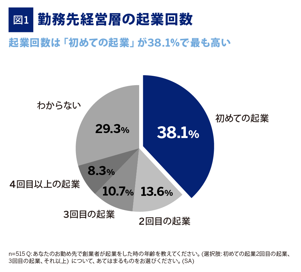 今回の調査では、創業者が初めて起業した法人に勤務する回答者が最多(38.1%)となりました(図1)。
