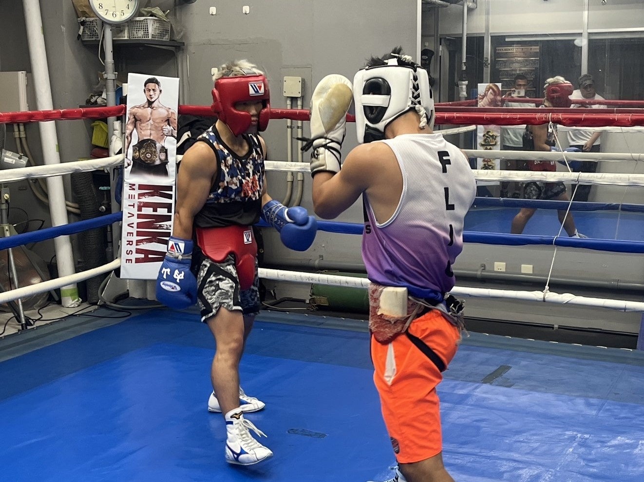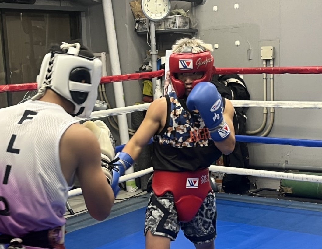 公開練習ではフィリピンから招聘したスパーリングパートナー、ジェイセバー・アブシードと軽めのスパーリングを公開。銀次朗は対戦相手のタドゥランを想定したサウスポーのアブシードのパンチに合わせてカウンターを打つ場面や相手をロープ際に追い込んでコンビネーションを見せる場面など、オフェンス面での多彩な動きを見せた。