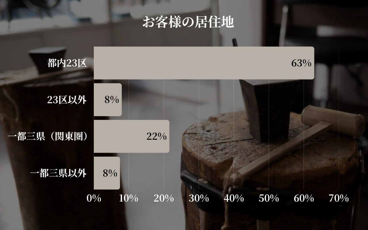 今月の利用者様の居住地は、「都内23区」が63パーセントと圧倒的多数を占めました。これに「一都三県(関東圏)」が22パーセントと続き、首都圏からの利用者が全体の93パーセントに達していることが最大のポイントです。