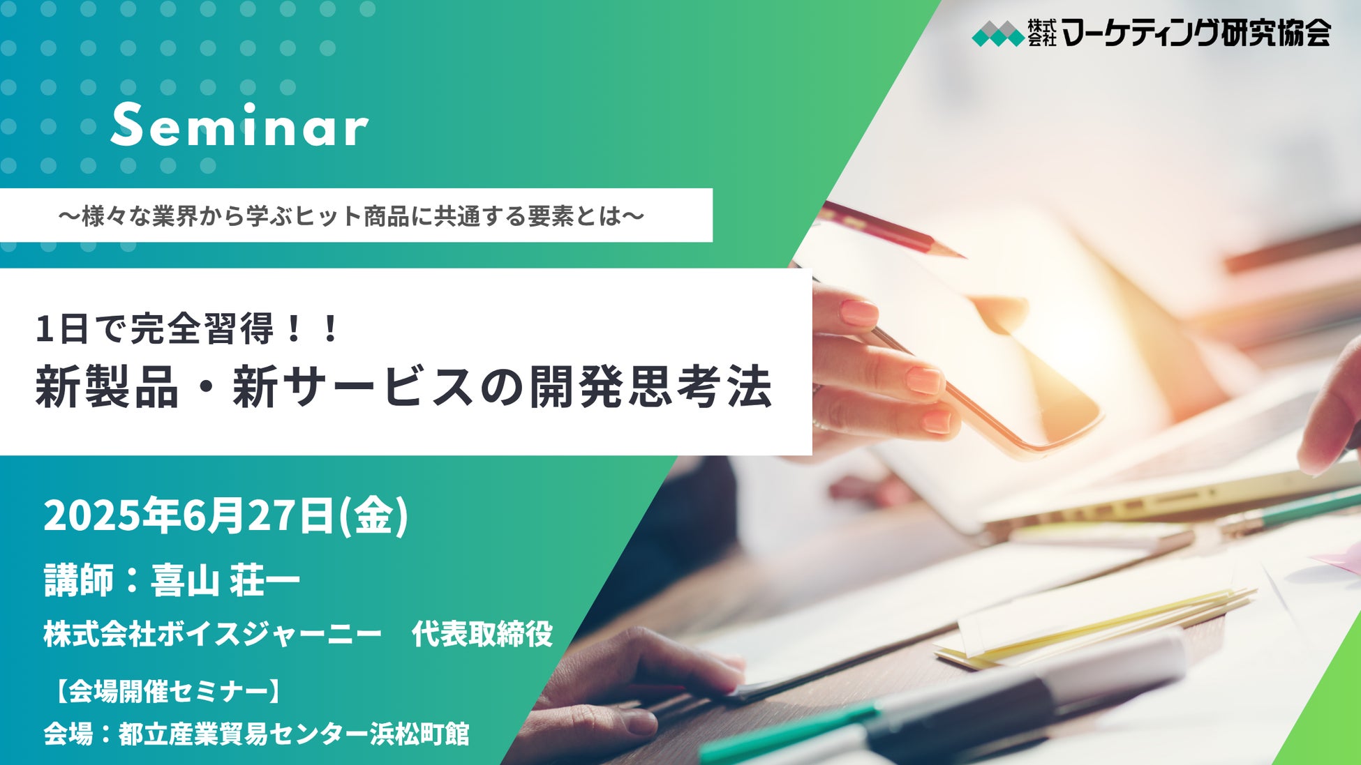 株式会社マーケティング研究協会は2025年6月27日、新製品・新サービスの開発思考法セミナーを開催いたします。※会場集合型で開催