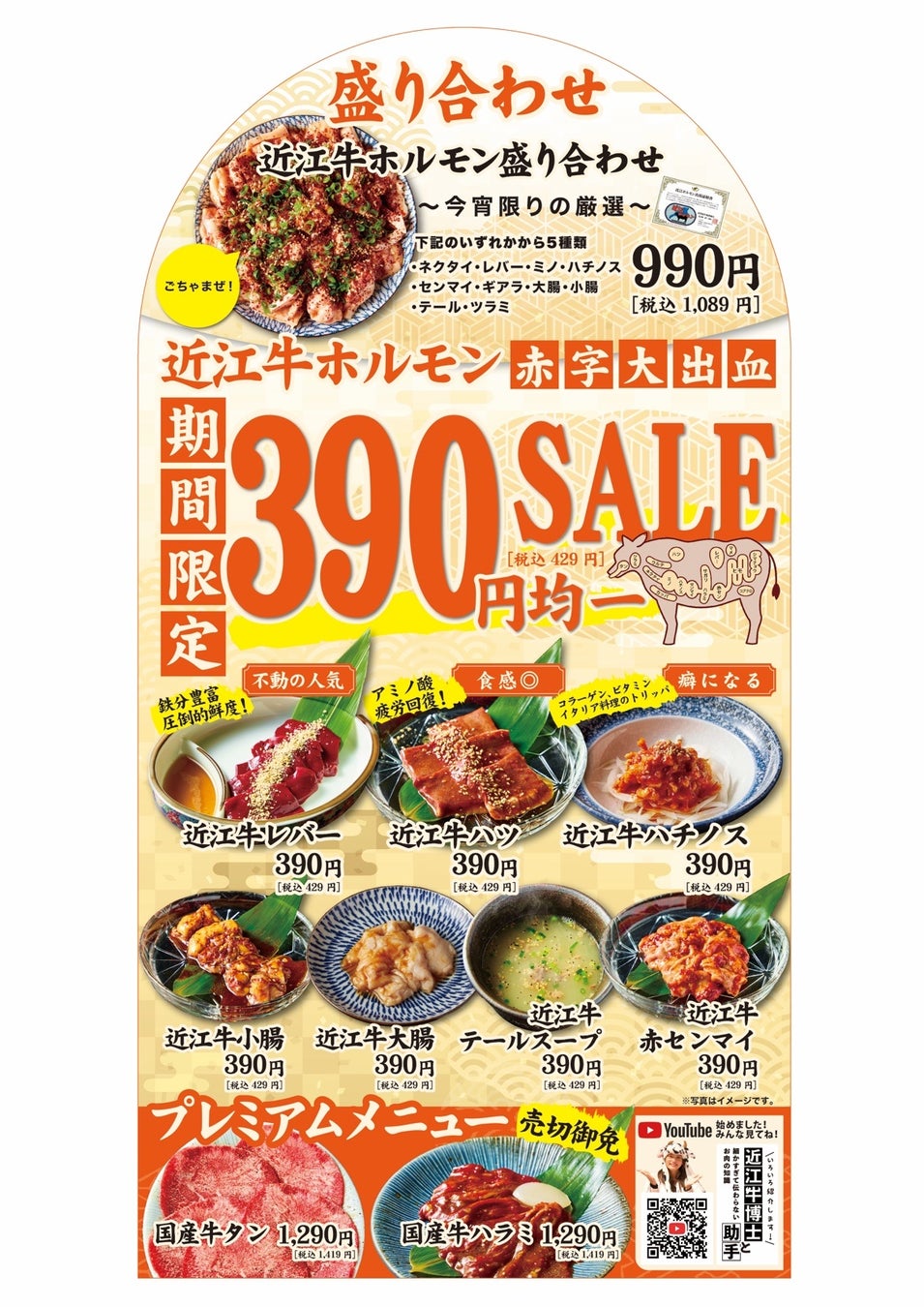 5月末まで近江牛ホルモン390円均一セールも開催中!