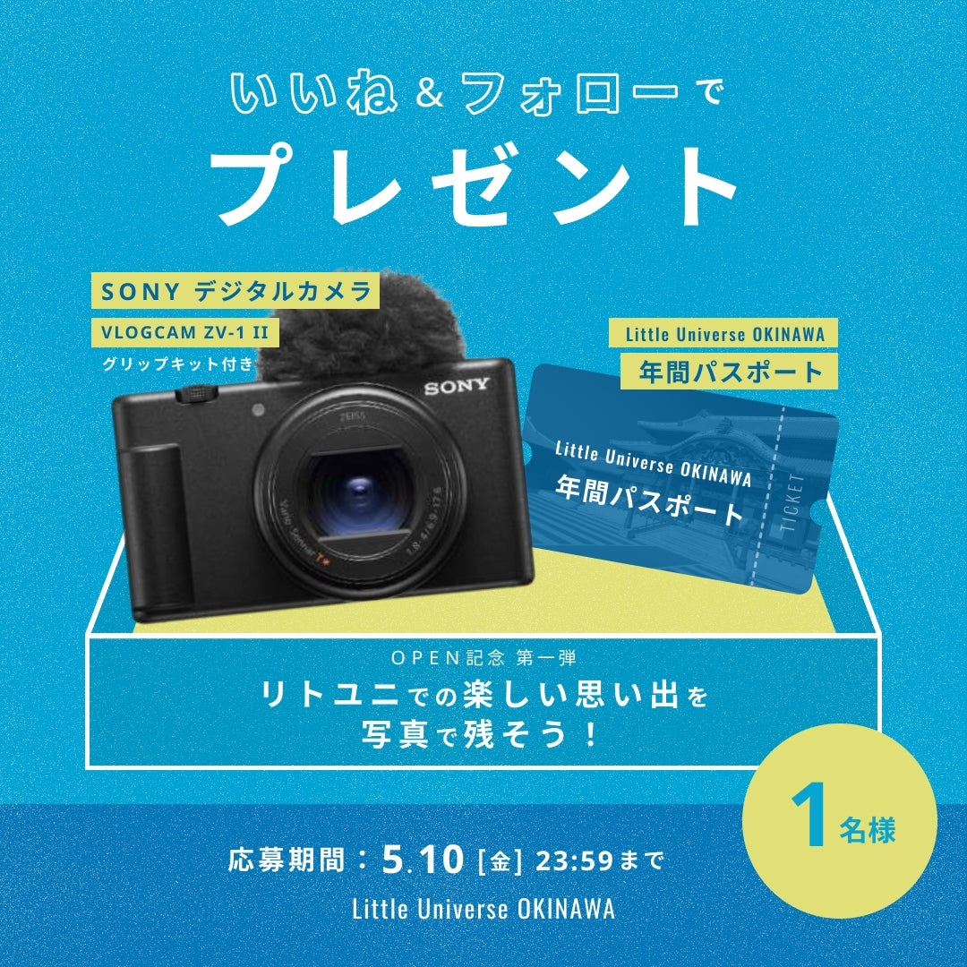 Little Universe公式インスタグラムでは、ただいま「フォロー&いいねで当たる!」プレゼントキャンペーンを実施中です。応募者の中から抽選で、旅行好きに嬉しい高性能カメラと、Little Universe年間パスポートのセットをプレゼントいたします。