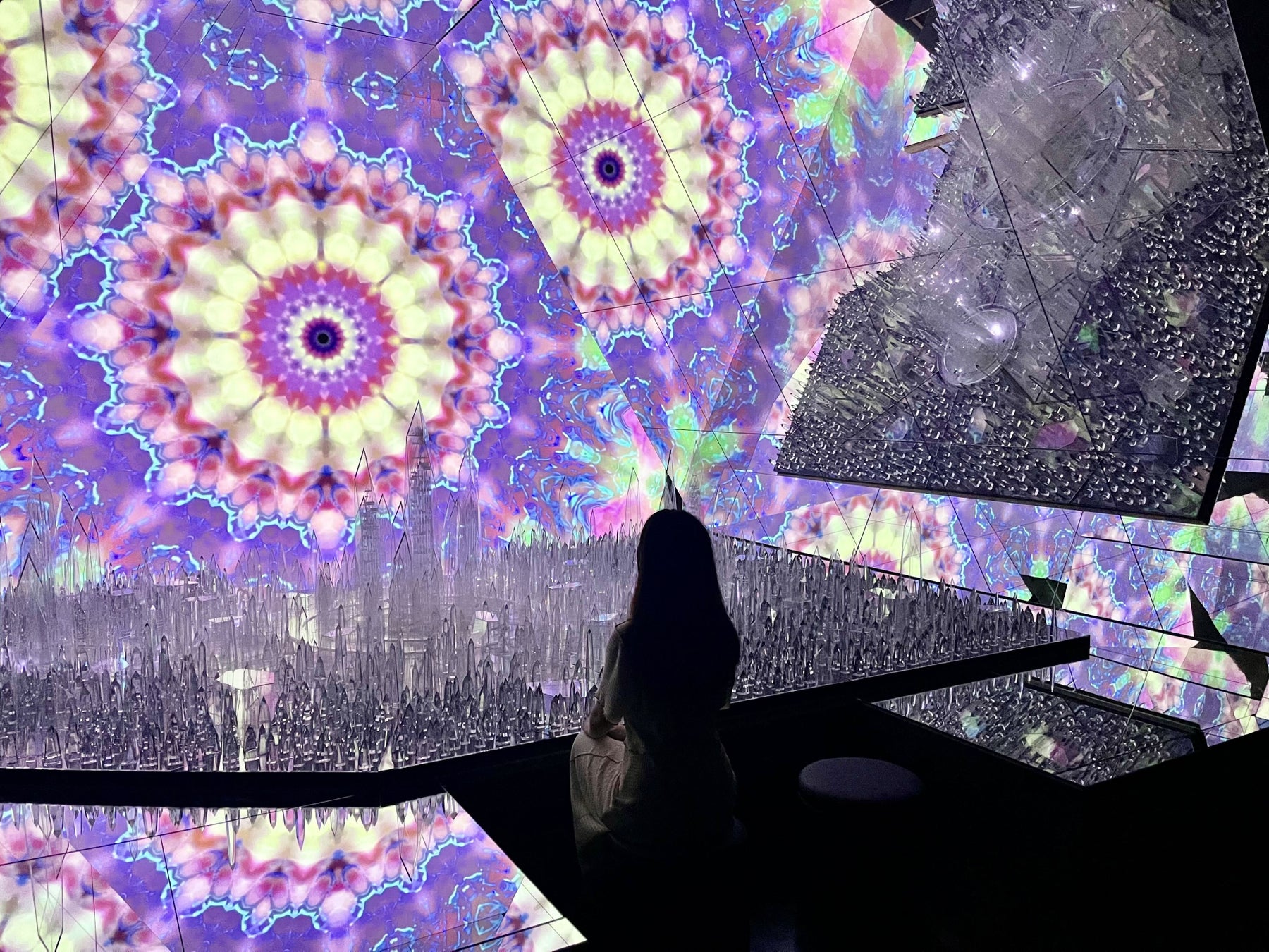 クリスタルと万華鏡がきらめく幻想的な空間「The Kaleidoscope」は、本施設内イチ推しのフォトスポット!全体をミラーに囲まれ、クリスタルとデジタルアートが融合するこの空間は、のぞき込む方向からさまざまな絵柄が映し出され、その美しさにはつい時間を忘れてしまうほど。SNS映え間違いなし!