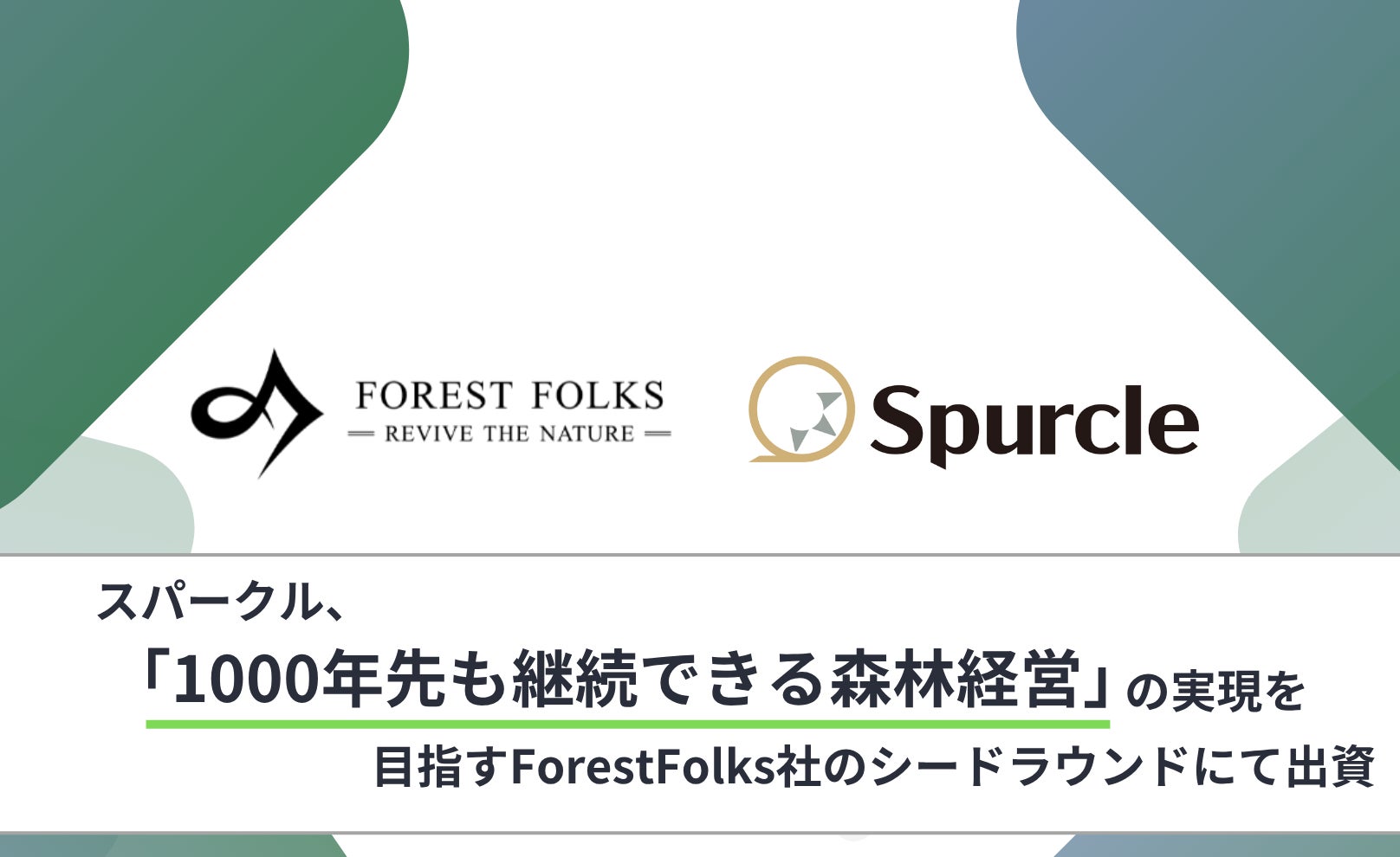 スパークル株式会社(本社:宮城県仙台市、代表取締役:福留秀基、以下「当社」)は、1000年先も自然と共存出来る世界の実現を目指し、森林アセットマネジメント事業を展開する株式会社ForestFolks(本社:新潟県南魚沼市、代表取締役:桜井隆志、以下「ForestFolks社」)のシードラウンドにて、スパークル1号ファンドより投資を実施したことをお知らせいたします。