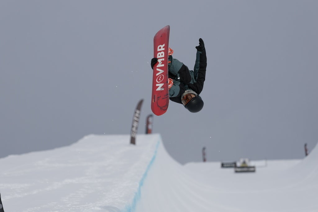 ハーフパイプ競技特有の空中回転・姿勢変化を2アングルで高精度に収録しており、