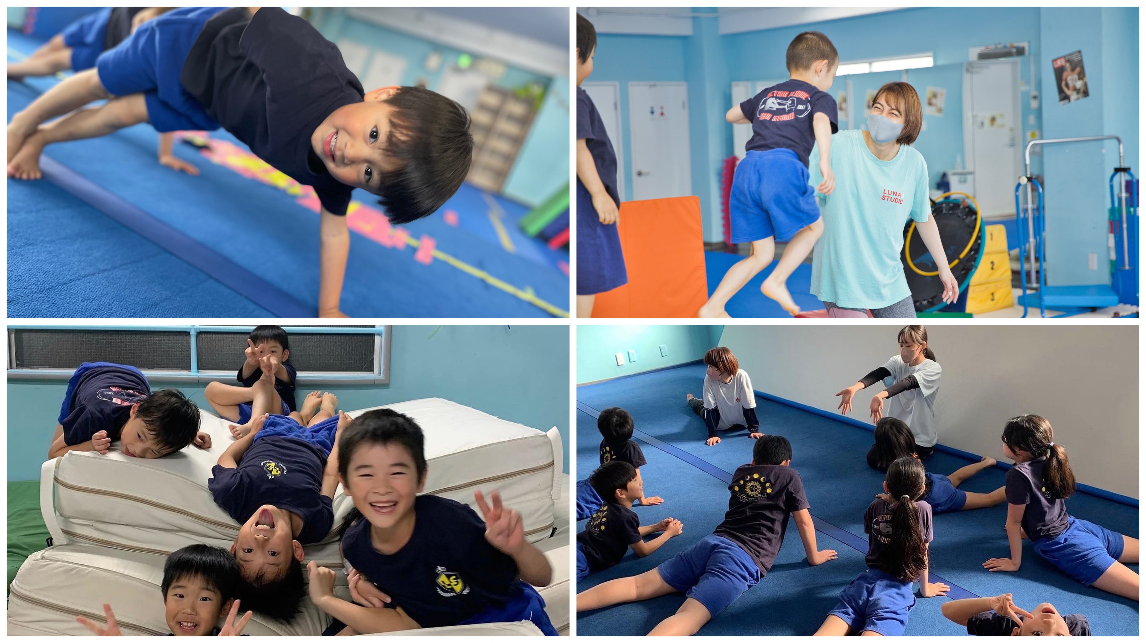 LUNA STUDIOは子供向けの体操教室で、「プレキッズ」「キッズ」「ジュニア」「ティーン」4つの年齢層にクラスを分けてレッスンを行っています。スタジオで学べる体操は身体能力の基盤となり、「できた!」という経験や「楽しい!」という気持ちは、やがて自信につながります。