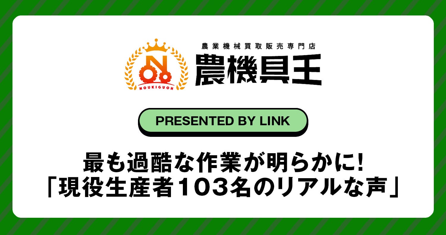 中古農機具の買取販売専門店「農機具王」を運営している株式会社リンク(本社:滋賀県近江八幡市、代表取締役:濱田 義郎)は、日本の生産者様103名を対象に「大変な農作業」に関するアンケートを実施しました。