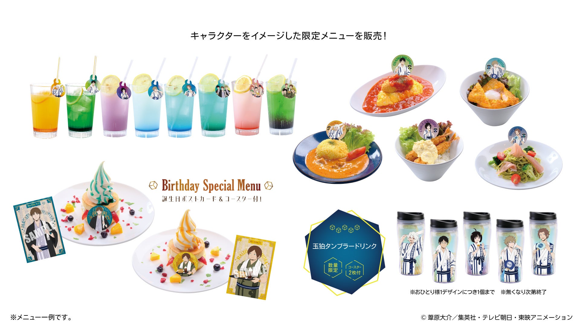 キャラクターをイメージした限定メニューを店舗で販売します。