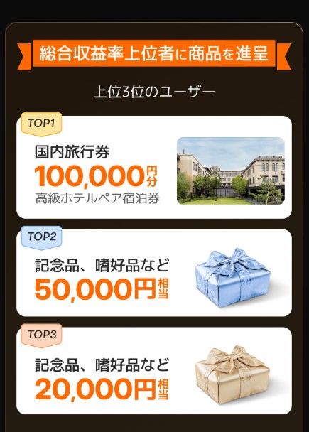 4月28日(月)~5月23日(金)の間に、口座開設していない方含めどなたでも無料参加できる本イベントでは、最大で10万円相当の豪華な賞品をご用意しております。