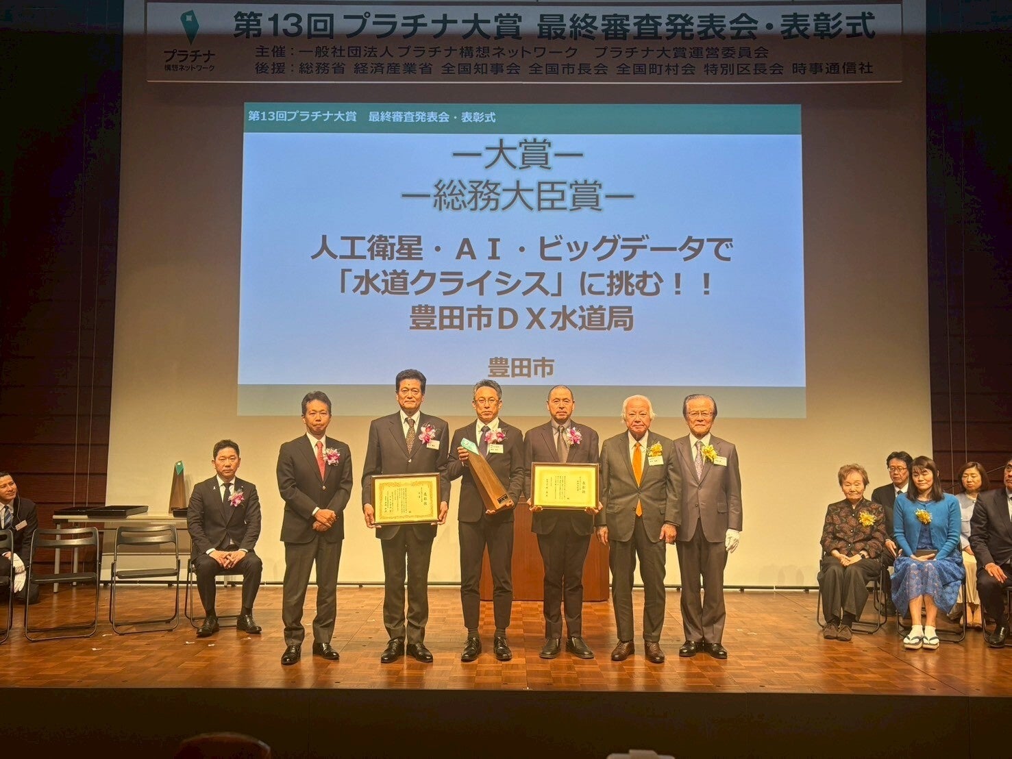 豊田市は、社会や地域の課題解決に向けた行政・企業などの取組を表彰する「第13 回プラチナ大賞」に応募し、令和7 年11 月5 日(水)に行われた最終審査発表会において大賞・総務大臣賞を受賞しました。