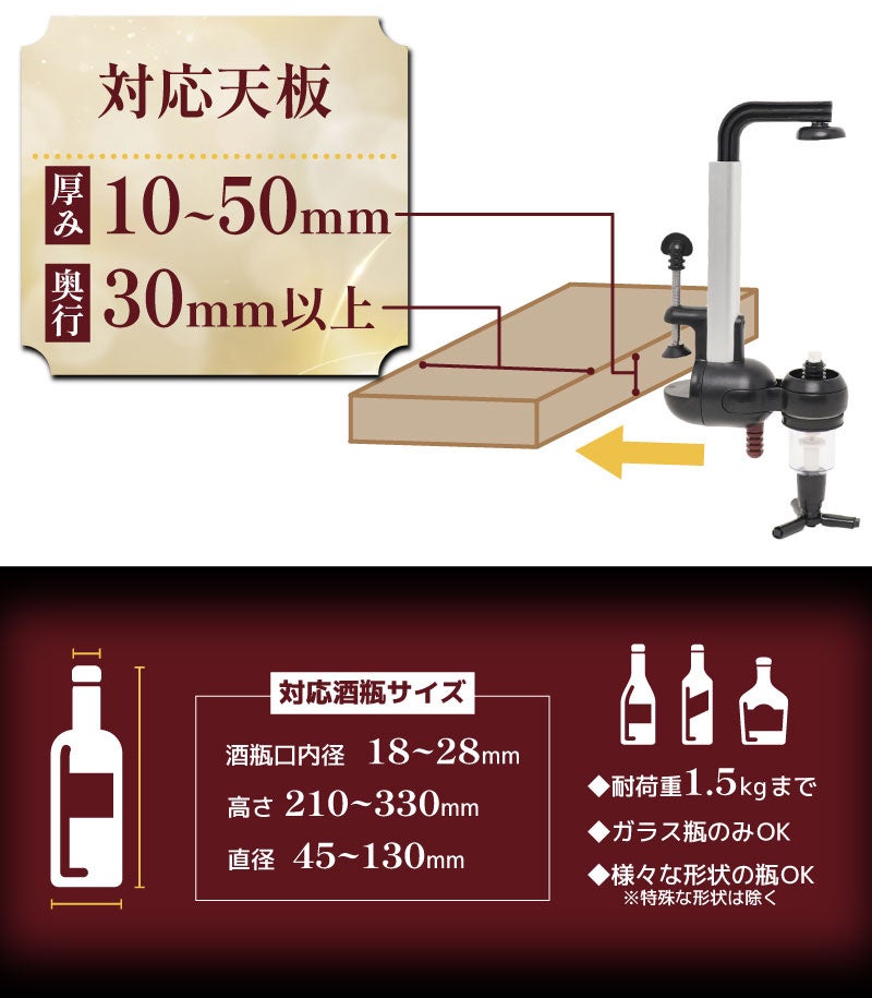 ・対応酒瓶サイズ:高さ:210~330(mm)、直径:45~130(mm)