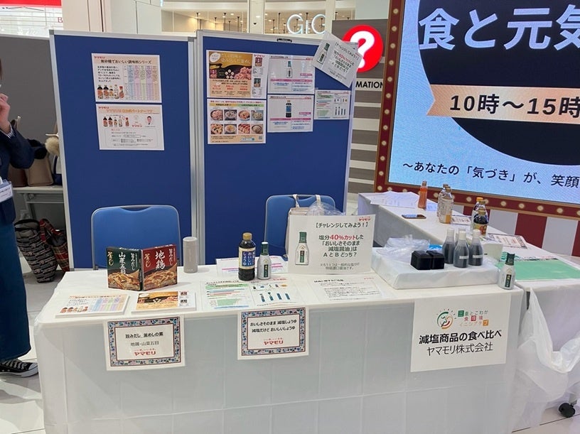 イベントでは自社商品を使い、毎日の食事で、おいしさを犠牲にすることなく無理なく健康配慮を意識することをご提案。その一環として「おいしさそのまま 減塩しょうゆ」と特級濃口醤油の食べ比べを実施しました。