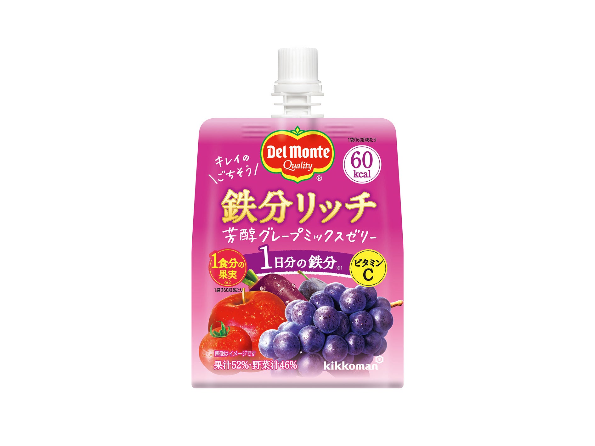 キッコーマン食品株式会社は、8月5日に、「デルモンテ 鉄分リッチ 芳醇グレープミックスゼリー」を全国で新発売します。