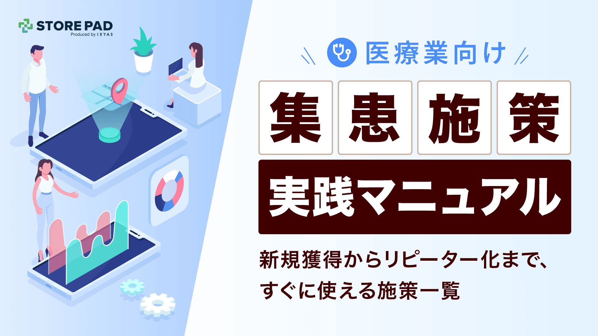 クリニック・歯科などの医療業向け集患・マーケティング支援プラットフォーム「STOREPAD(ストアパッド)」を提供するイクシアス株式会社(本社:東京都中央区、代表取締役社長 CEO:内藤 崇司)は、このたび、医療業の皆様向けに『集患施策実践マニュアル -新規獲得からリピーター化まで、すぐに使える施策一覧- 』を無料で公開いたしました。