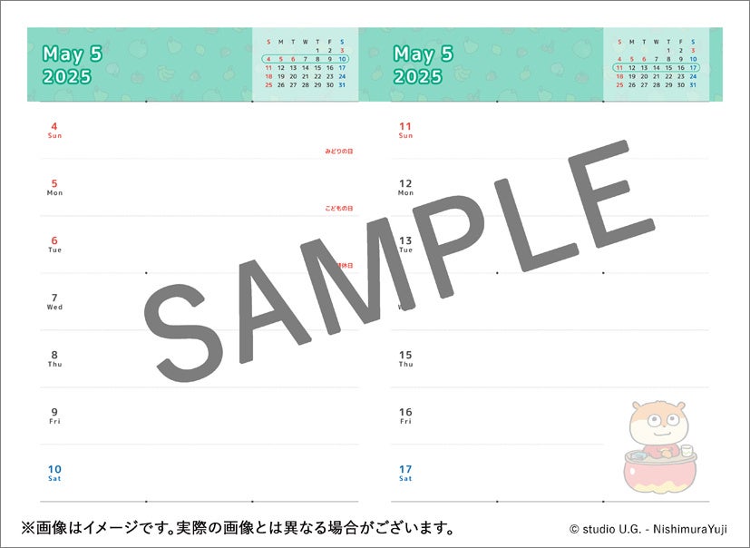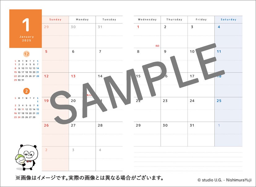 カレンダーは卓上B6サイズでデスクにも置きやすいサイズ感となっています。スケジュール帳は月ページに加え週ページ、メモページも搭載しており機能性も抜群です。2025年も「スタジオUG」の仲間たちと一緒に過ごしましょう!