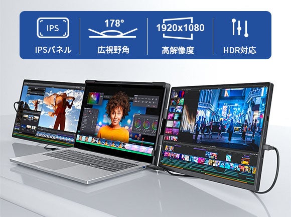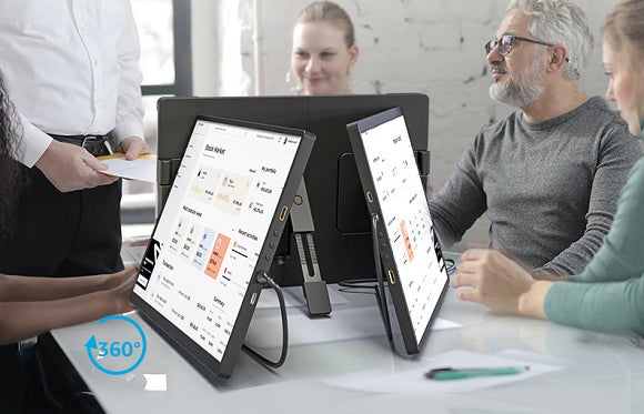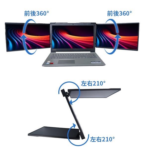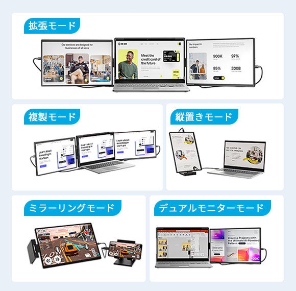 縦/横置き&画面向きは自由自在!折り畳み式ポータブル拡張モニター