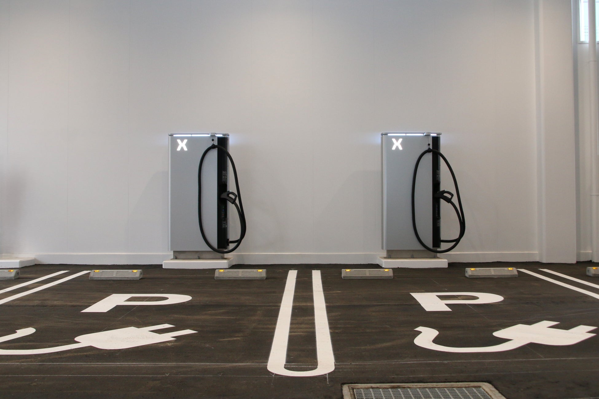 お客様の車両へ充電できるよう、PowerX社製の急速充電器を2ポート設置しました。