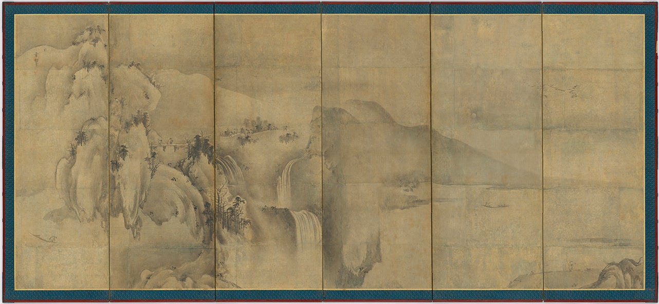 右隻(うせき)には春から夏の景、左隻(させき)には秋から冬の景が描かれ、自由闊達な筆さばきや、巧みにほどこされた墨の濃淡によって、四季折々の深遠な山水の様がみごとに捉えられています。