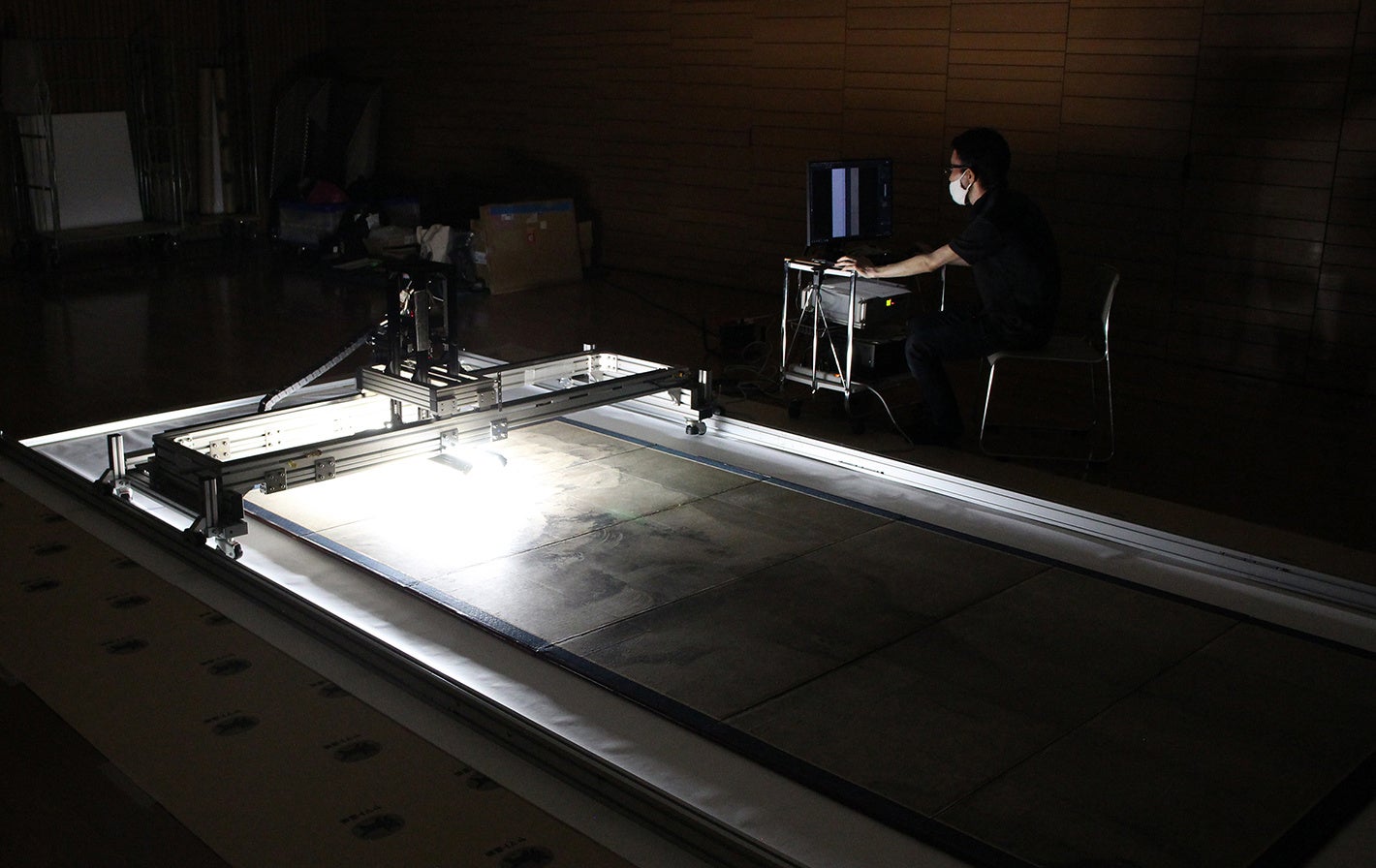 専用のスキャナーを使用し、非接触でのスキャニングにより、美術作品を劣化させる事なく、高精細画像を取得するもので、微細な凹凸や質感、色彩を忠実に再現することが可能なデジタルデータとして作品を保存するものです。