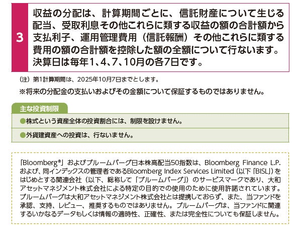 分配金額は収益分配方針に基づいて委託会社が決定します。あらかじめ一定の額の分配をお約束するものではありません。分配金が支払われない場合もあります。