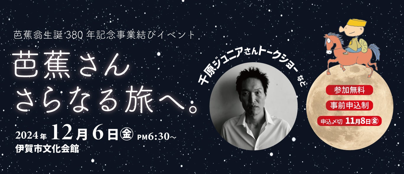 【三重県伊賀市】芭蕉翁生誕380年記念事業結びイベント「芭蕉さん さらなる旅へ。」千原ジュニアさんをゲストに迎え12/6(金)開催!