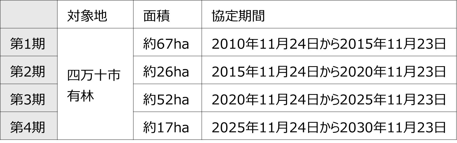 新たな協定期間は2025年11月24日から2030年11月23日までです。引き続き地域の森林保全に貢献できることを嬉しく思います。今後も植樹や間伐を通じ、地域とともに“育てる森づくり”を進めていきます。