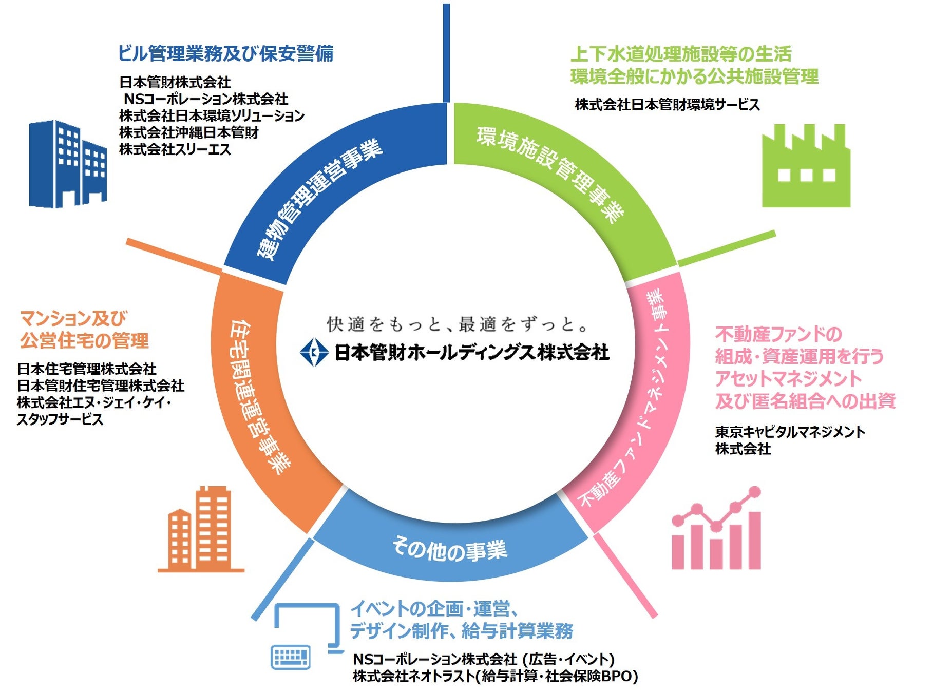 事業内容:オフィスビル、集合住宅、環境施設等の管理運営事業や不動産ファンドマネジメント事業等を営むグループ会社の経営管理及びこれに附帯又は関連する業務