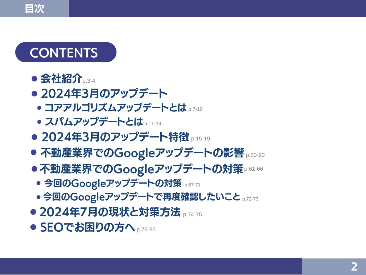 今回のGoogleアップデート分析レポートのトピックは下記の通りです。