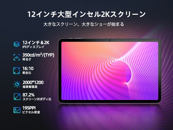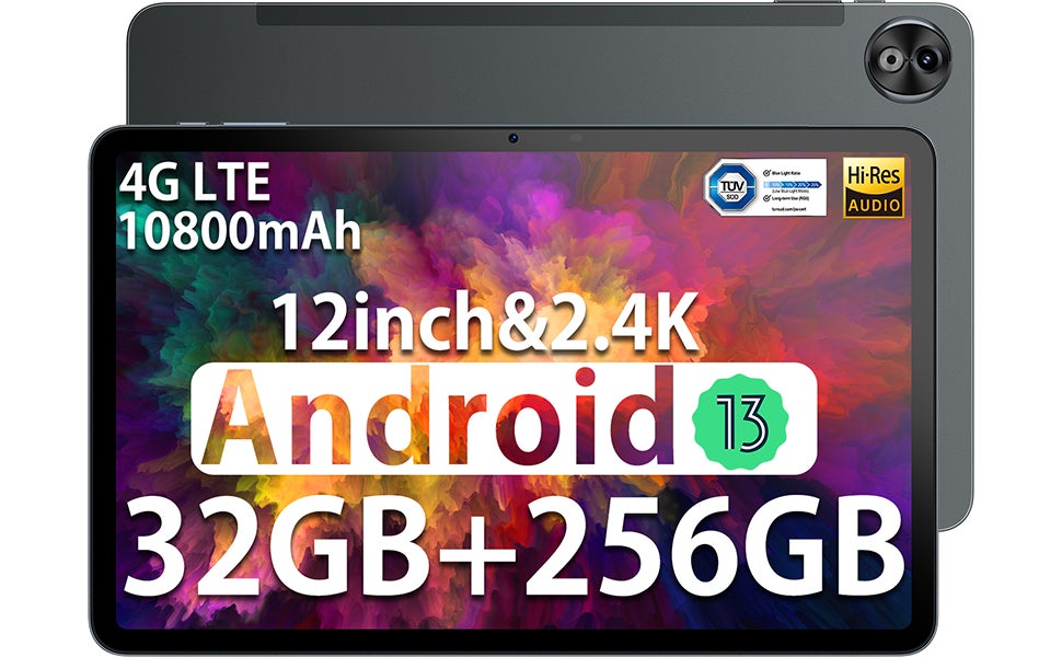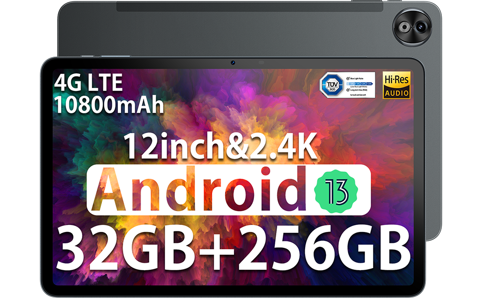 32GB+256GB(2TB TF拡張)、2.4K FHD 12インチ IPS in-cellディスプレイ、helio g99 2.2GHz 8コア、18W PD急速充電+10800mAh、4G LTE アンドロイド タブレット +5G WiFi、16MP/8MP+顔認識、TUV ブルーライト認証、専用ケース付属