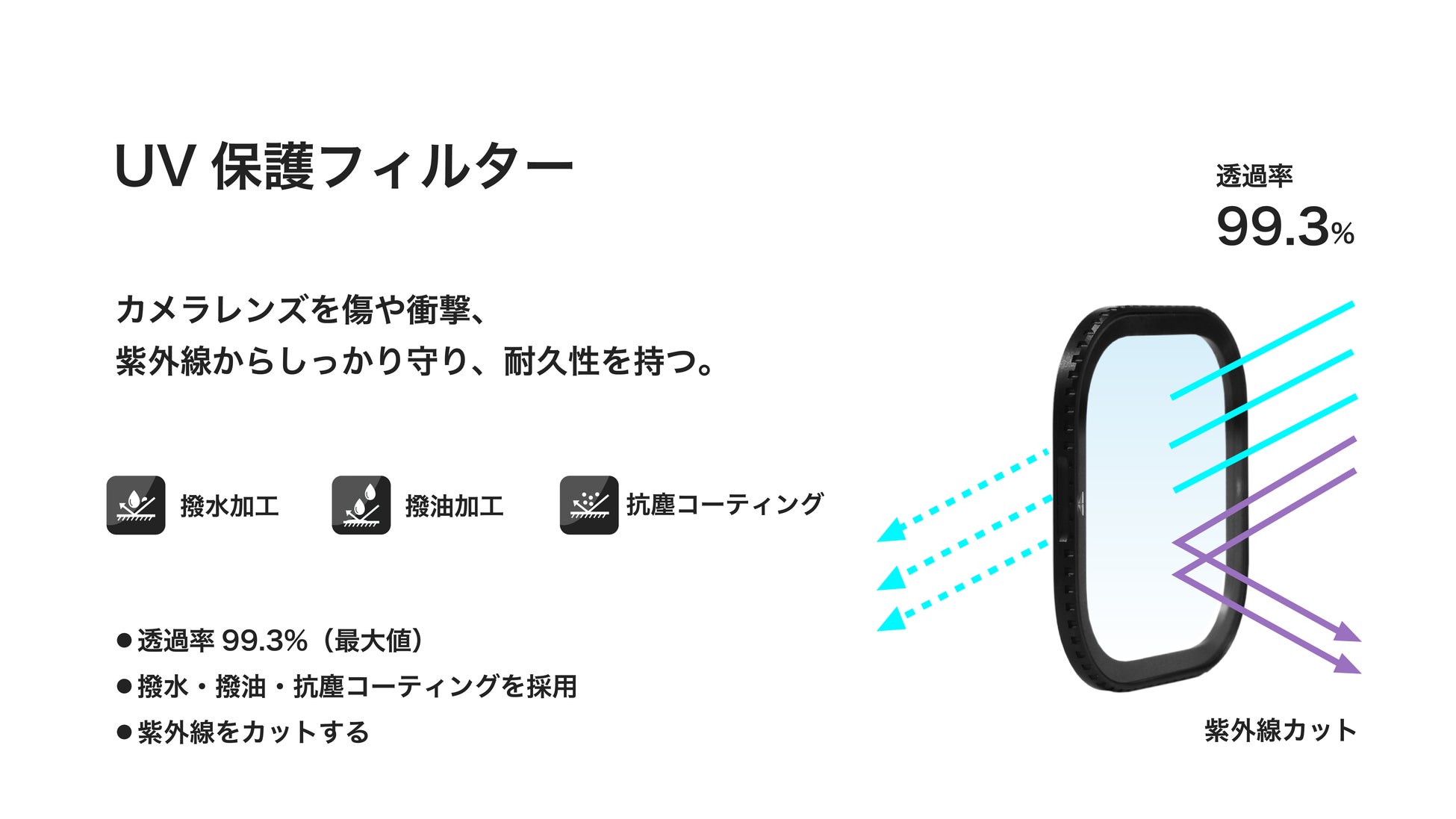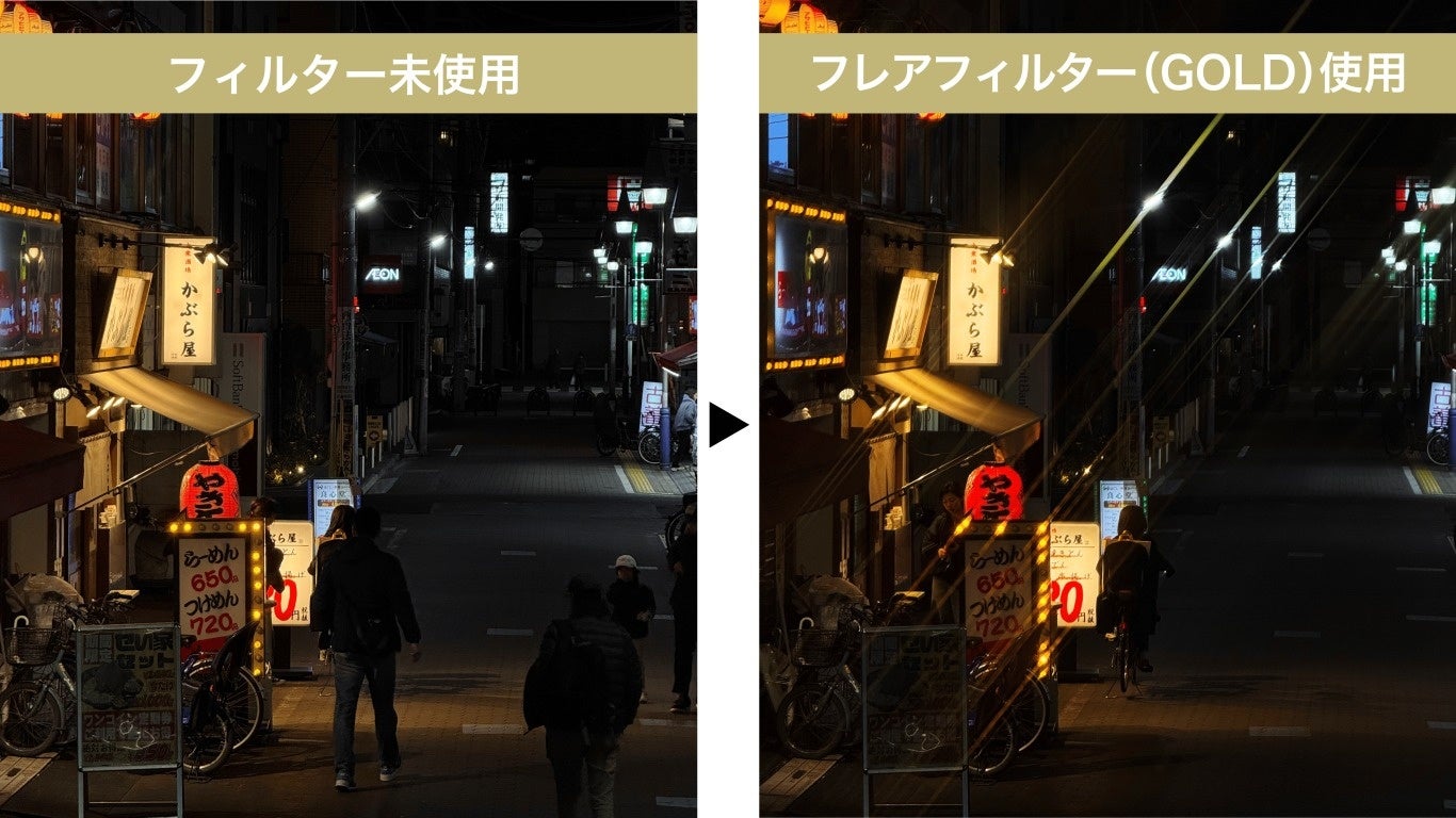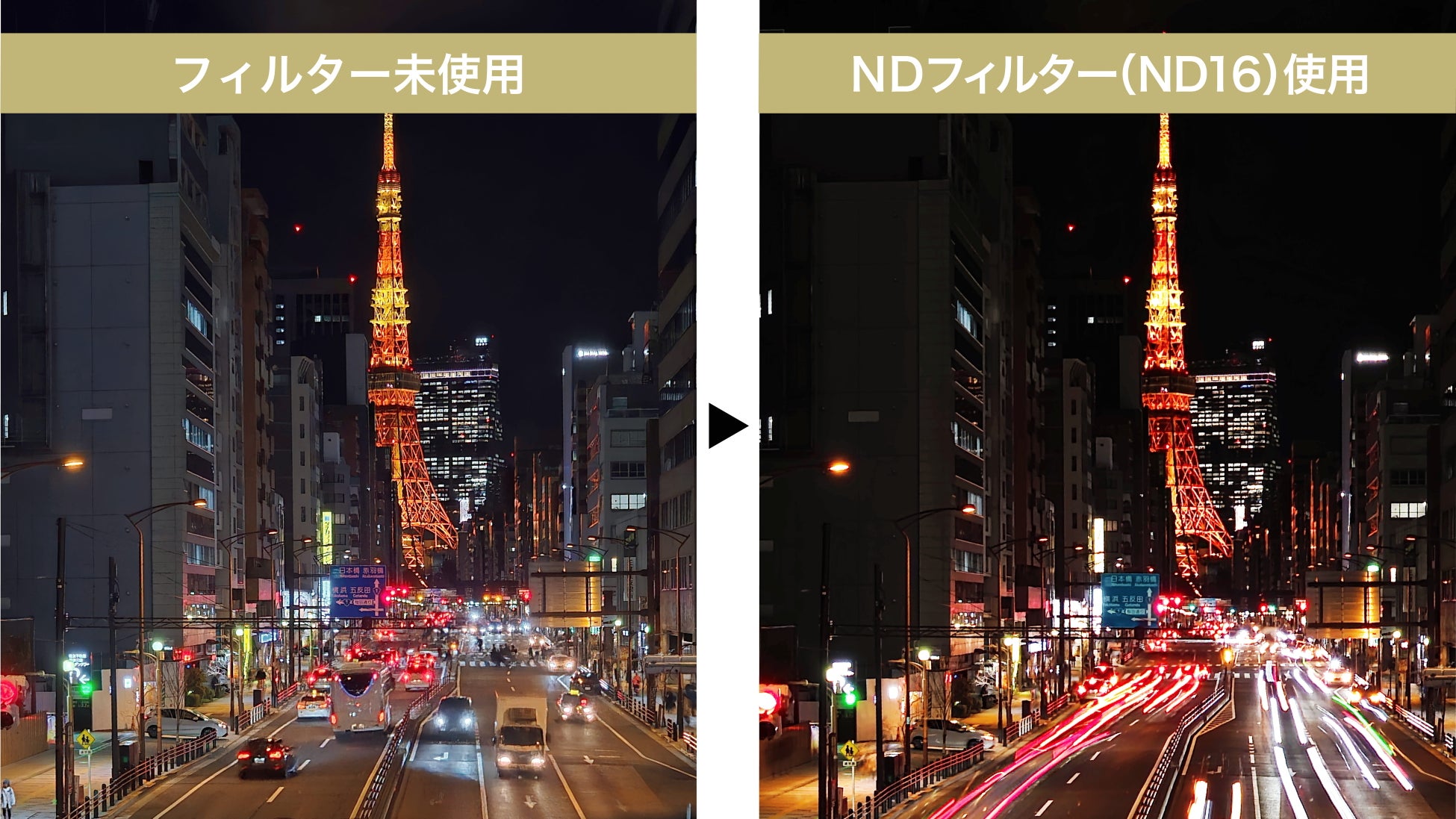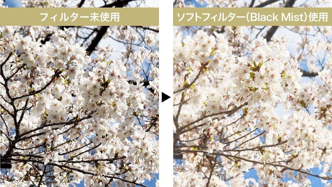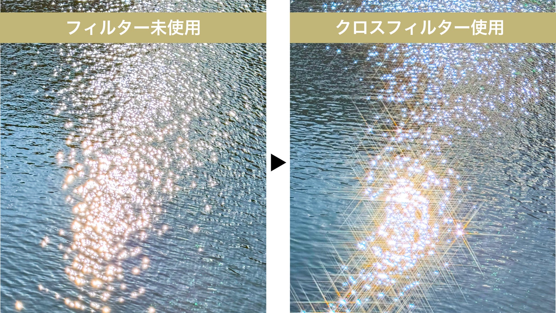 保護フィルターを取り外すだけで、キラキラとした光の効果を演出する「クロスフィルター」、明るさを調整できる「NDフィルター」、ふんわりした雰囲気を出せる「ソフトフィルター」など、さまざまなフィルターを簡単に取り付けられます。日常のスナップ写真から特別なイベントの撮影まで、ワンランク上の仕上がりを手軽に楽しめます。