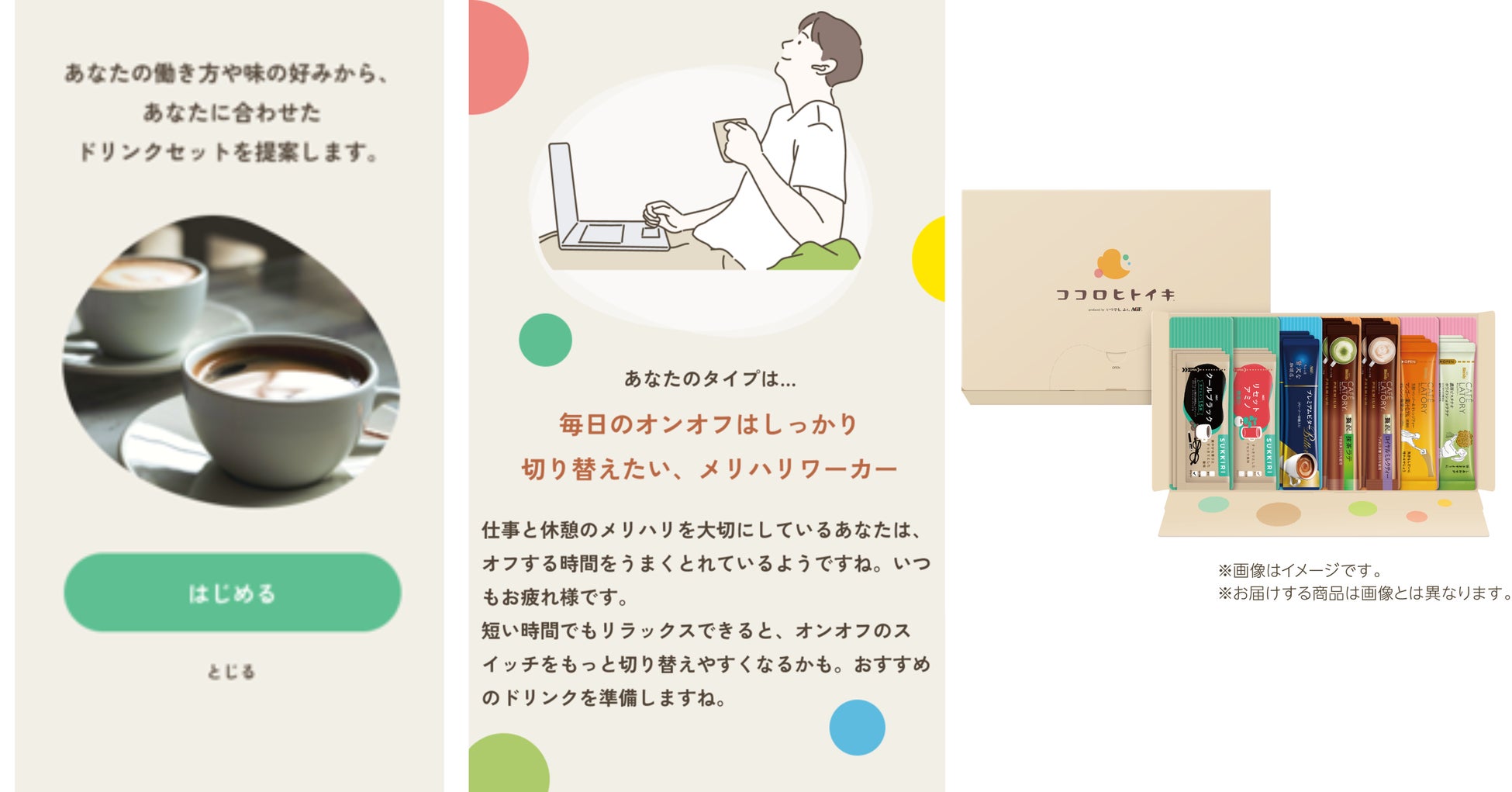 「ココロとカラダの健康」への貢献を目指す味の素AGF株式会社(代表取締役社長:島本 憲仁 以下、味の素AGF)は、ドリンクを淹れて飲むひととき(休憩)を通じ、テレワーク中の気持ちのリズムを整え、休憩をサポートするパーソナライズドリンクセットの定期便「ココロヒトイキ®」を2025年4月25日(金)より本格スタートしました。※2