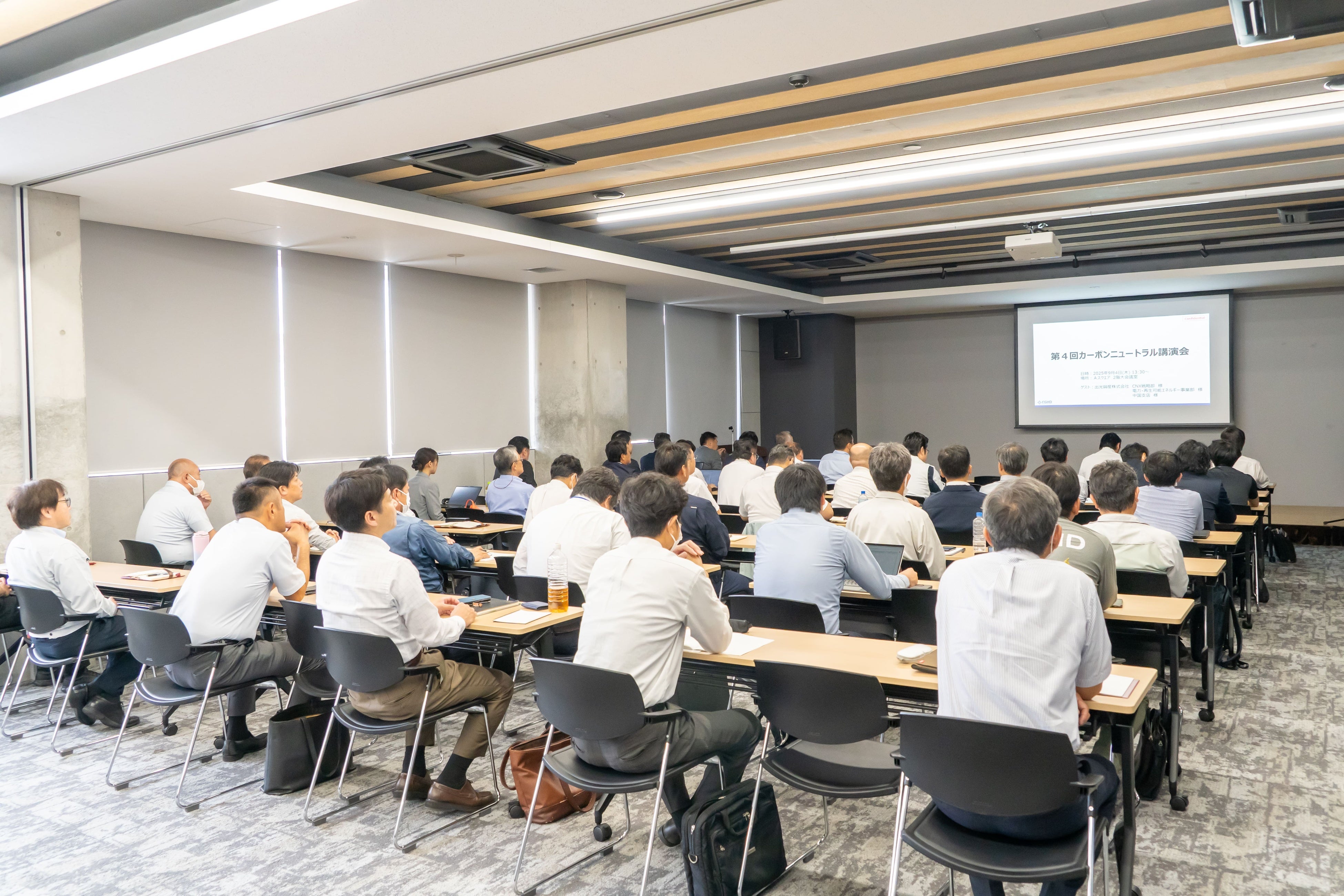 本講演会は、脱炭素社会の実現に向けて企業に求められる役割や、エネルギーを取り巻く環境変化について理解を深め、今後の事業活動や提案力の向上につなげることを目的として実施したものです。