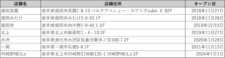 ●岩手県内のエニタイムフィットネス店舗 ※オープン日順