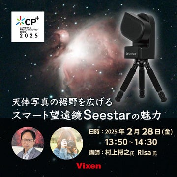 総合光学機器メーカー株式会社ビクセン(本社:埼玉県所沢市、代表取締役:新妻和重)は、2025年2月27日(木)~3月2日(日)まで、パシフィコ横浜での会場イベントとオンラインイベントのハイブリッドで開催される「カメラと写真映像のワールドプレミアムショー『CP+2025』」に出展します。会場では新製品をはじめとするビクセン製品やセレストロン製品、ZWO社製「Seestar」を展示するとともに、プレゼンテーションステージにて2つのトークショーを行います。