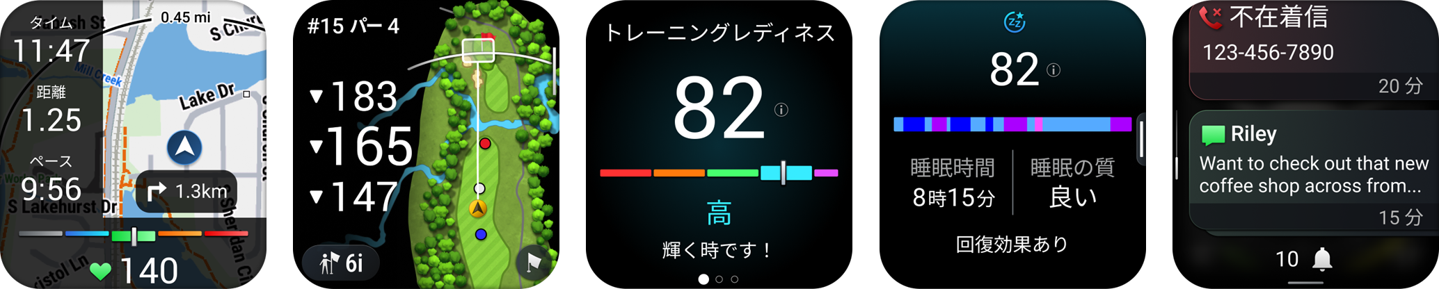 ・特に睡眠機能は、睡眠を数値とコメントで評価する「睡眠スコア」、最適な睡眠時間の提案により睡眠改善をサポートする「睡眠コーチ」、昼寝や仮眠をモニタリングする「お昼寝検出」、心拍変動から自律神経の状態を見える化する「HRVステータス」など、コンディション管理のためのパーソナライズされた様々な機能を搭載。