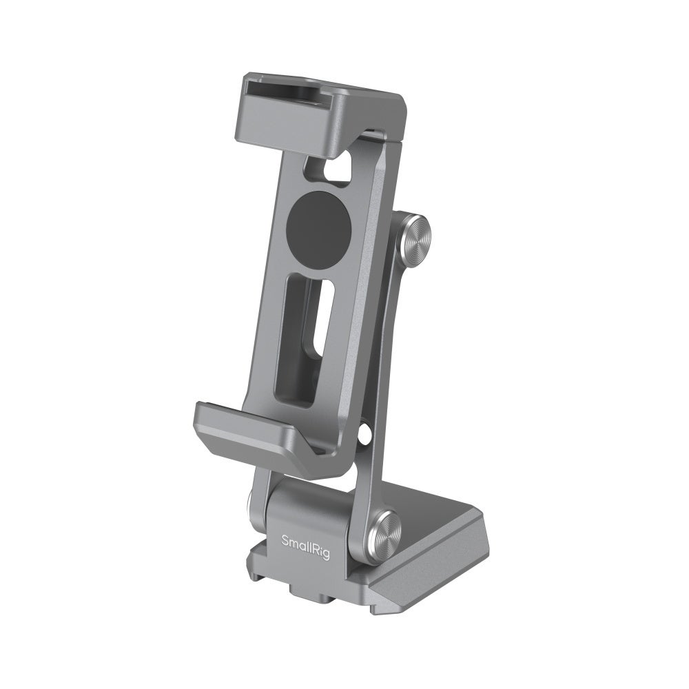 クランプ式スマホホルダー(アルカスイス互換)5338は、スマホでコンテンツを制作するクリエイター向けに設計されています。この製品により、スマホをアルカスイス規格の三脚やDJI RS 4 MiniおよびRS 3 Miniスタビライザーに取り付けることができます。また、向きや角度を自由に調整可能です。幅約64〜100mmのスマホに対応しています。ベースには三脚を取り付けるための1/4インチ-20の位置決め穴があり、上部のコールドシューマウントを通じて、マイクやビデオライトなどの取り付けにも便利です。